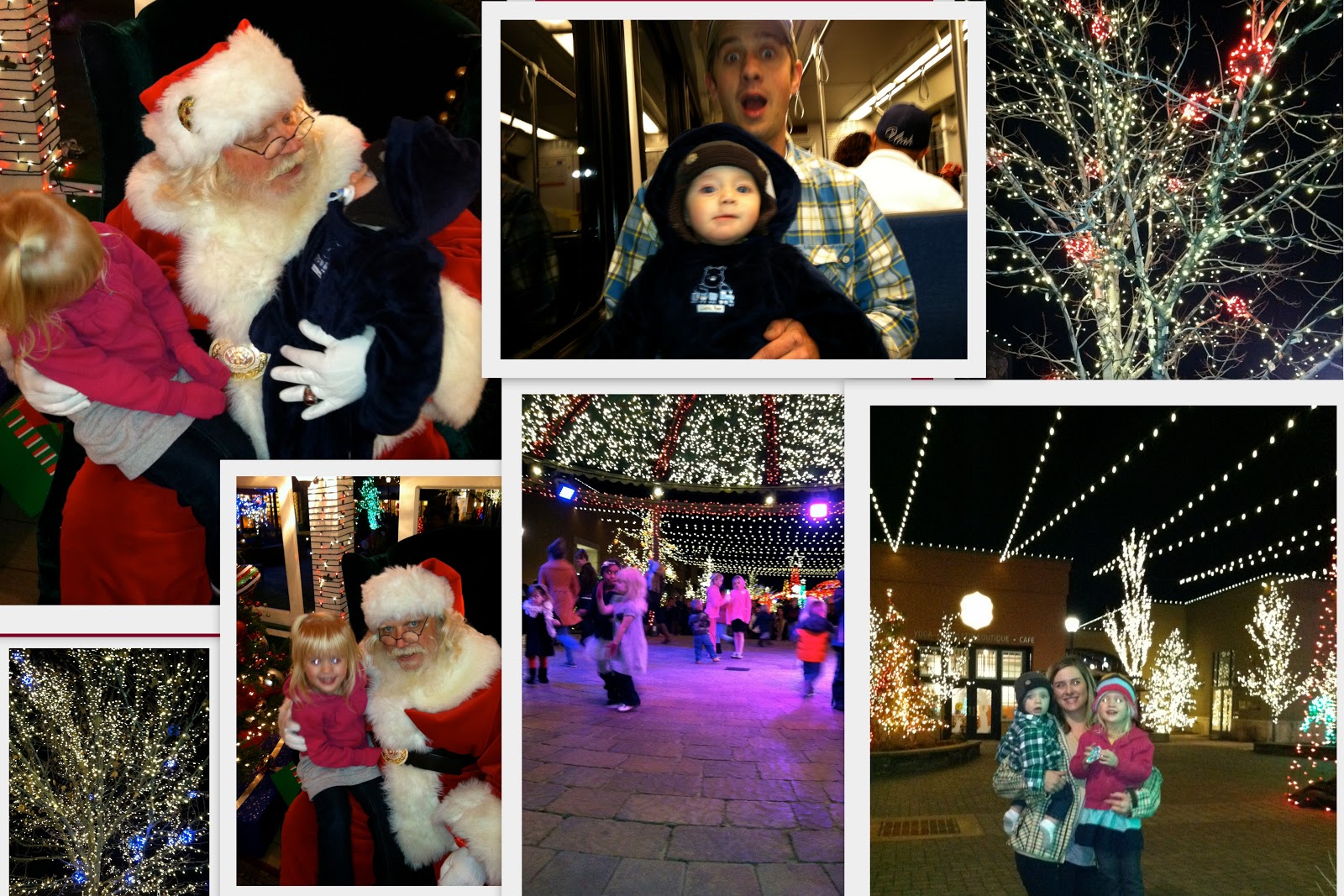 A few weeks before Christmas Greg and I took the kids down to the Riverwoods outdoor shopping center in Provo. They had it completely covered in lights, it was so pretty. We saw Santa (Malaya made sure to tell him her list of toys she wanted) and Malaya danced to the live band.